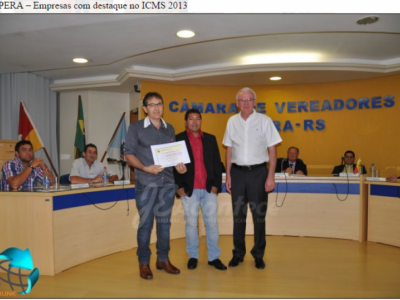 A Câmara de Vereadores de Tapera, a pedido do vereador Claudio Schultz (PDT), homenageou as 20 empresas que mais se destacaram na formação do índice do ICMS no município no ano passado. Foram agraciadas com um certificado as 10 primeiras empresas da modalidade Geral e outras 10 na do Simples Nacional.