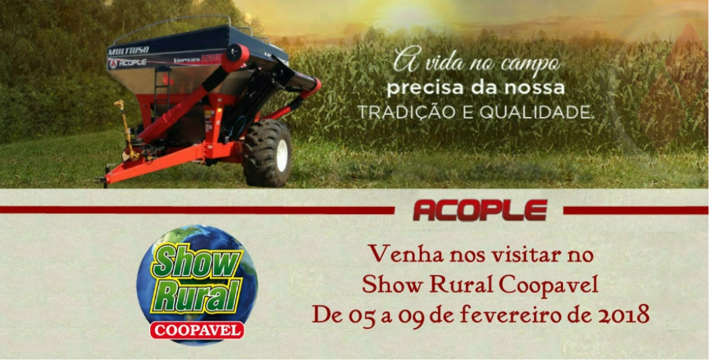 Você é o nosso convidado para nos visitar no show rural Coopavel 2018, que acontecerá do dia 05/02/2018 a 09/02/2018 em Cascavel-PR.